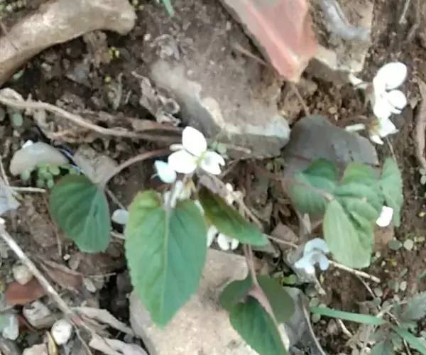花近白色,大形,长达2厘米;花梗通常不高出于叶,或有时稍高于叶,中部有2枚小苞片,小苞片互生,线形,长8-10毫米,先端渐尖,边缘疏生细齿;萼片披针形或宽披针形,长7-8毫米,宽约3毫米,先端尖,基部附属物短,长约1.5毫米,末端平截,疏生钝齿;花瓣长圆状倒卵形,上方花瓣长约1.2厘米,宽约0.8厘米,侧方花瓣长约1.2厘米,宽约1厘米,里面近基部有须毛,下方花瓣连距长1.8-2厘米,距筒状,长6-8毫米,末端圆,通常向上方弯曲;下方雄蕊的距细,角状,长4-5毫米;子房近球形,无毛,花柱基部微膝曲,柱头顶部平坦,周围有稍厚的缘边,前方具短喙,喙端的柱头孔细。