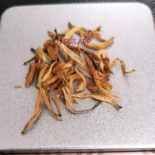 《本草纲目》描述:“萱宜下湿地,冬月丛生。叶如蒲、蒜辈而柔弱,新旧相代,四时青翠。五月抽茎开花,六出四垂,朝开暮蔫,至秋深乃尽。其花有红、黄、紫三色。结实三角,内有子大如梧子,黑而光泽。其根与麦门冬相似,最易繁衍。”