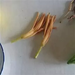 嵇含《宜男花序》亦云‘荆楚之士号为鹿葱,可以荐葅’,尤可凭据。今东人采其花跗,干而货之,名为黄花菜。”