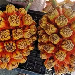 露兜籽有一定药用价值,经刀工修理后也可把玩,形状像莲花的样子,一般是用来做法器的坠子,抵珠,穗头。装饰用,有的大的也可以做把件跟文玩核桃差不多,拿在手里玩。成色一般是用手一搓非常鲜艳的红色,有种与要滴血的感觉结合形状故名字的得来。