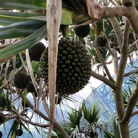聚合果球形、下垂;核果约 100 个,成熟时黄色。性强健,耐旱又耐阴,抗风性强,幼株可盆栽作观叶植物,成树为庭园美化高级树种。