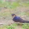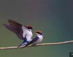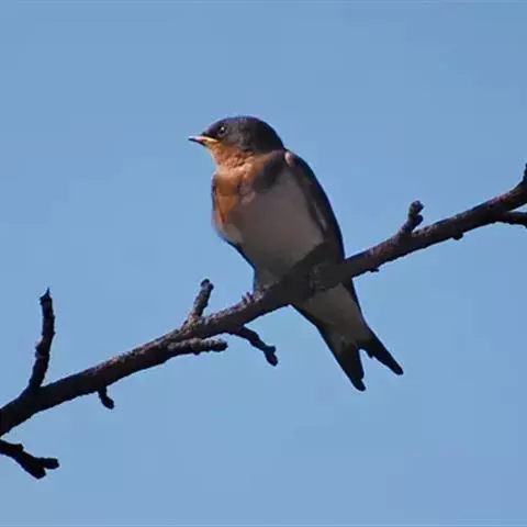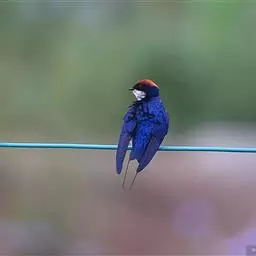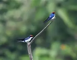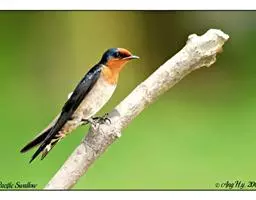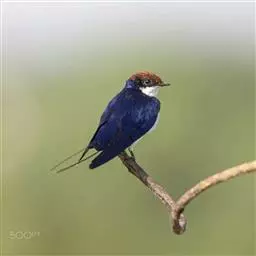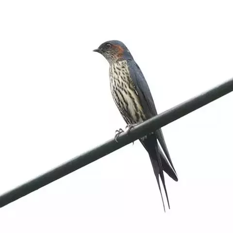 线尾燕,腹部接近纯白色,背部则为深紫色,头部的羽毛是栗色的。