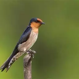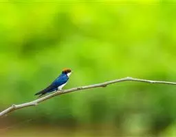 金腰燕:体长16-18厘米,体重18-21克,寿命15年。上体黑色,具有辉蓝色光泽,腰部栗色,…