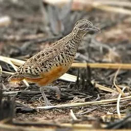 林三趾鹑小型鸟类,体长11~15厘米。外形很像鹌鹑,但胸为棕黄色,两胁有黑色斑点,头具淡乳黄色中央…