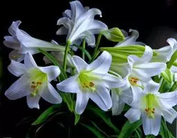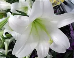 百合花的种头是由近百块鳞片抱合而成,古人视为“百年好合”、“百事合意”的吉兆。故历来许多情侣在举行婚礼时都要用百合来做新娘的捧花。除了这种好意头之外,它那副端庄淡雅的芳容确实十分可人。它植株挺立,叶似翠竹,沿茎轮生,花色洁白,状如喇叭,姿态异常优美,能散出隐隐幽香,被人誉为“云裳仙子”。故在国际花卉市场上长期走俏,历久不衰。