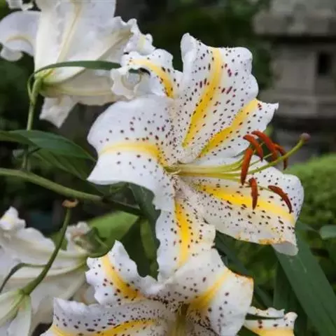岷江百合是百合科百合属的多年生鳞茎草本植物。鳞茎宽卵圆形,鳞片披针形,茎有小乳头状突起;狭条形叶散生,…