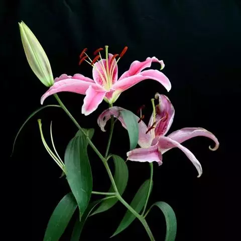 要想获得高品质的百合切花,温室的温度控制十分重要。在定植后的3-4周内土壤温度必须保持9-13℃低温,以促进生根。温度过低会不必要的延长生长期限,而温度高于15℃,则会导致茎生根发育不良。这些茎生根很快会代替基生根为植株提供90%的水份和营养,所以要想获得高品质的百合,茎生根的发育状况十分关键。生根期过后东方百合的环境温度应控制在15-25℃,若白天温度过高则应以通风、遮荫来降低温度;若夜温达15-25℃,则百合切花花茎短,花苞少,品质降低,此时用赤霉素溶液喷浇植株以增加花茎长度的方法,具体用量因不同的生长期,不同环境温度而有所不同,一般生长初期可少些,后期可多些。国内的日光温室冬季温度普遍会延长百合的生长期,并严重影响切花的品质,应增加调节温度的手段。