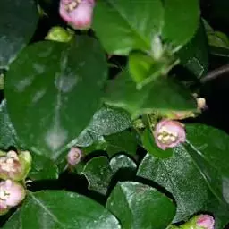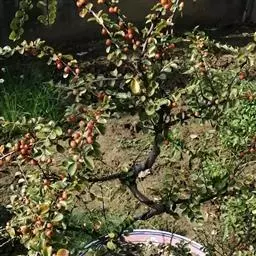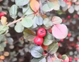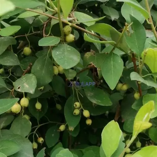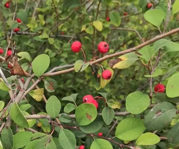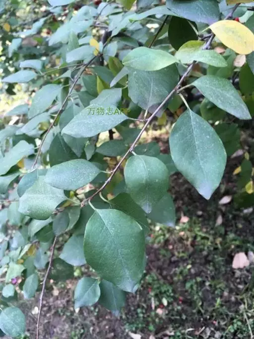 水栒子 落叶灌木,高达4米;枝条细瘦,常呈弓形弯曲,小枝圆柱形,红褐色或棕褐色,无毛,幼时带紫色,具短界毛,不久脱落。叶片卵形或宽卵形,长2-4厘米,宽1.5-3厘米,先端急尖或圆钝,基部宽楔形或圆形,上面无毛,下面幼时稍有绒毛,后渐脱落;叶柄长3-8毫米,幼时有柔毛,以后脱落;托叶线形,疏生柔毛,脱落。