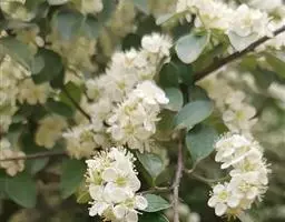 水栒子,初夏白花繁盛,入秋红果累累,像一把巨大的红伞,点缀草坪,在绿叶衬托下,白花红果艳丽可爱,是优美的观花观果灌木。水栒子宜丛植于草坪边缘、园路转角、坡地,是很好的园林绿化树种。