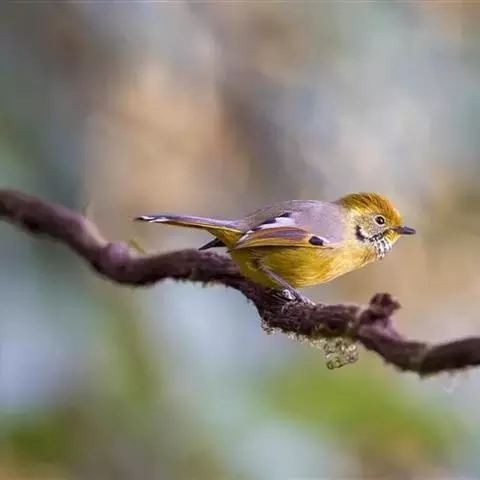 白腹凤鹛是绿鹃科、绿凤鹛属的小型鸟类,体长10-12厘米。上体从头到尾黄绿色,有短的羽冠,…