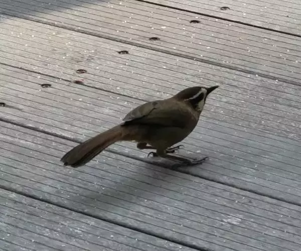 黑顶噪鹛:中型鸟类,体长24-26厘米。前额、脸、颏、喉黑色,头顶黑褐沾棕或深棕橄榄褐色,…