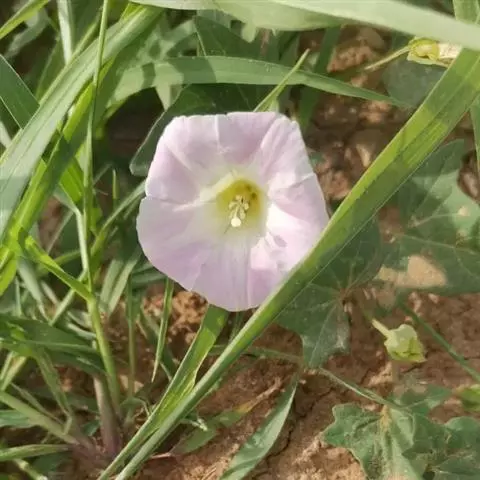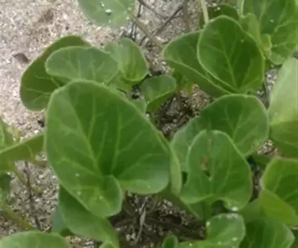 多年生草本,全体近于无毛,具细长的根。茎细长,平卧,有细棱或有时具狭翅。叶肾形,长0.9-4厘米,宽1-5.5厘米,质厚,顶端圆或凹,具小短尖头,全缘或浅波状;叶柄长于叶片,或从沙土中伸出很长。花腋生,1朵,花梗长于叶柄,有细棱;苞片宽卵形,比萼片短,长0.8-1.5厘米,顶端圆或微凹,具小短尖;萼片近于等长,长1.2-1.6厘米,外萼片长圆形,内萼片卵形,具小尖头;花冠淡红色,钟状,长4-5.5厘米,冠檐微裂;雄蕊花丝基部扩大,无毛;子房无毛,柱头2裂,扁平。蒴果卵球形,长约1.6厘米。种子黑色,长6-7毫米,表面无毛亦无小疣。