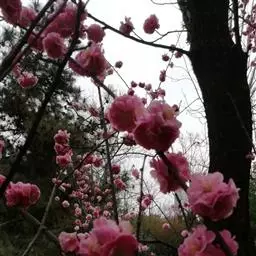 宫粉型(Armeniaca mume f.alphandii (Carr.)Rehd.) 花碟形,半重瓣至重瓣,粉红色。现知75个品种,如宫粉、粉嘴子、千叶红、南京春,粉妆台阁等。