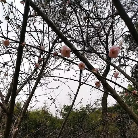 四、杏梅类(Armeniaca mume var. bungo Makino) 枝和叶似山杏;花半重瓣,粉红色,如杏梅、洋梅、送春等品种。花期较晚,抗寒性较强,可能是杏与梅的天然杂交种。