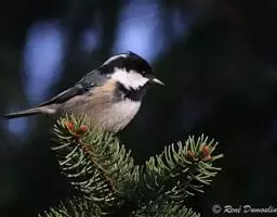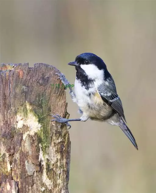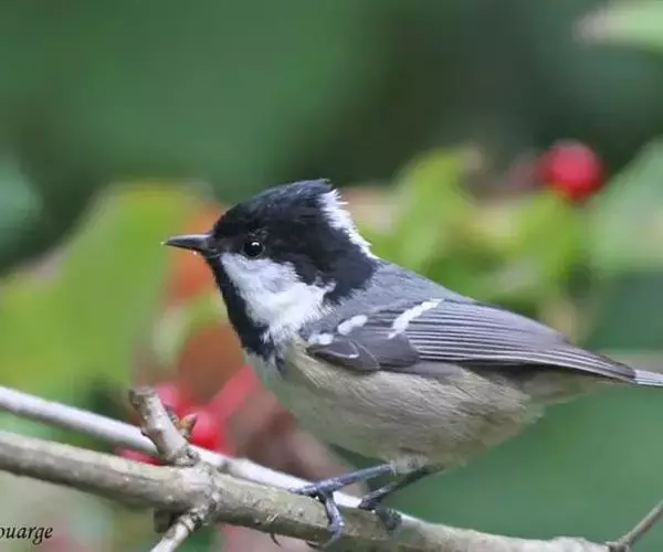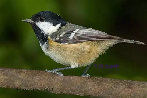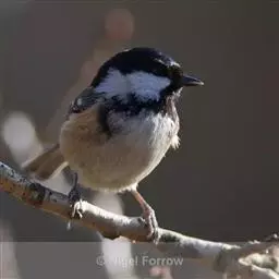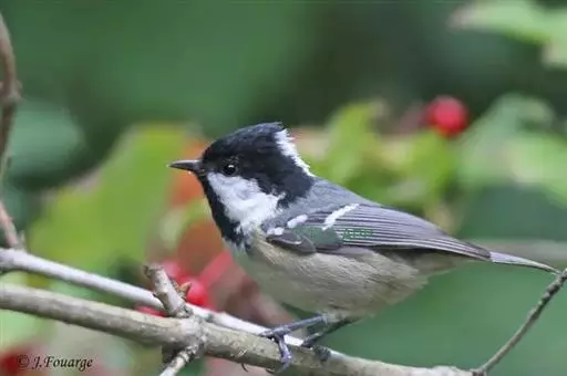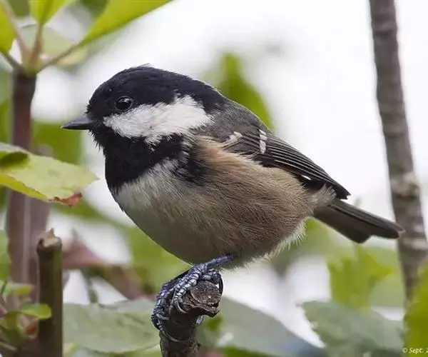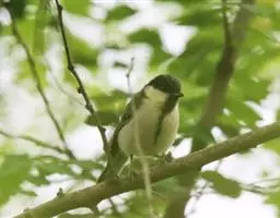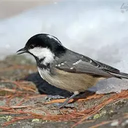 煤山雀(学名:Periparus ater):是鸟纲、山雀科的鸣禽。共有21个亚种。是一种栖息于针叶林的小型鸟类。体长11厘。头顶、颈侧、喉及上胸黑色。翼上具两道白色翼斑以及颈背部的大块白斑使之有别于褐头山雀及沼泽山雀。背灰色或橄榄灰色,白色的腹部或有或无皮黄色。多数亚种具尖状的黑色冠羽。与大山雀及绿背山雀的区别在胸中部无黑色纵纹。虹膜褐色;嘴黑色,边缘灰色;脚青灰色。