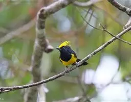 黄颊山雀是雀形目山雀科山雀属鸟类。雄鸟额、头顶和羽冠为具有光泽的黑色;额基、眼先、眉纹、脸颊和耳羽等头颈侧为鲜艳的明黄色;贯眼纹黑色;后颈亦具一黄斑;上体灰黄绿色,羽缘黑色;尾羽黑色具蓝灰色羽缘,基部白色;下体颏、喉至上胸为富有金属光泽的黑色;胸下有一黑色宽中央纵纹,一直延伸至肛周;其余下体白色;胸侧和两胁染黄色或蓝灰色;虹膜暗褐色;喙黑色;脚铅蓝灰色至铅黑色。雌鸟似雄鸟,但上体光泽较弱,胸腹部黑色纵带不明显。黄颊山雀分布于亚洲东南部地区,在中国分布于华中、华南和西南等地。栖息于中低山常绿阔叶林、针叶林和混交林中,也见于山麓疏林灌丛草坡或茶园、果园等地。常成对或小群活动,也和大山雀等其他小型鸟类混群,活跃地在乔灌木枝叶间飞翔跳跃。主食鳞翅目和鞘翅目等昆虫,兼食植物种实。繁殖期在4-6月,营巢于树洞、岩隙或墙缝中。窝卵数为3-7枚,卵灰白色且有红褐斑,雏鸟晚成。黄颊山雀被列入中国林业局200
