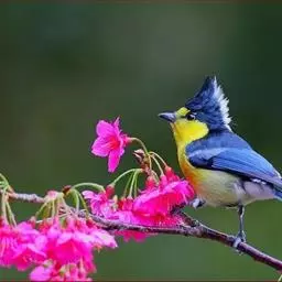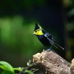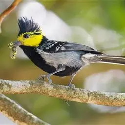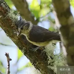 台湾黄山雀体长约13厘米。头顶至后颈黑色,有一长的黑色羽冠,羽冠末端和后颈中央白色。背苍绿色,…