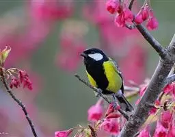 黄腹山雀是雀形目山雀科山雀属鸟类。虹膜褐色或暗褐色;嘴蓝黑色或灰蓝黑色;头、喉胸斑黑色,…