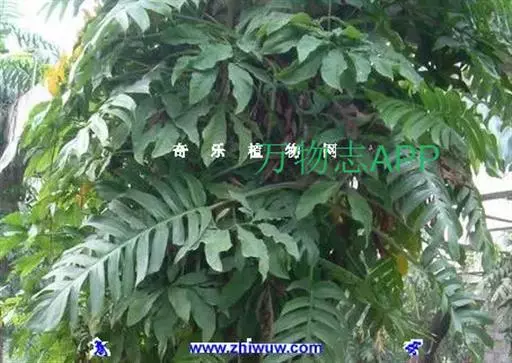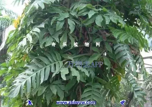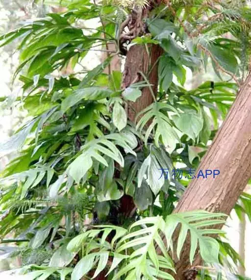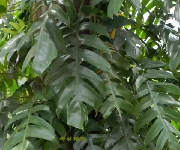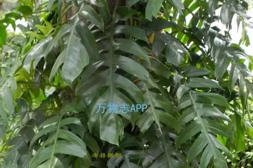 麒麟叶,攀援藤本。茎圆柱形,粗壮,多分枝;气生根具发达的皮孔,平伸,紧贴于树干或石面上。叶柄长25-40cm,上部有长约2.2cm的膨大关节;叶鞘逐渐撕裂,膜质,脱落;叶片薄革质,幼叶狭披针形或披针状长圆形,基部浅心形,成熟叶长圆形,基部宽心形,长40-60cm,宽30-40cm,两侧不等地羽状深裂,裂片线形,两端几等宽,先端斜截头状,沿中肋有2行星散的、有时为长达2mm的小穿孔;侧脉明显。花序柄圆柱形,粗壮,长10-14cm,基部有鞘状鳞叶包围;佛焰苞外面绿色,内面黄色,长10-12cm,渐尖;肉穗花序圆柱形,钝,长约10cm,粗3cm;花两性,无花被;雄蕊4;雌蕊具棱,长5-6mm,顶平,柱头线形,纵向。浆果小,种子肾形。花期4-5月。