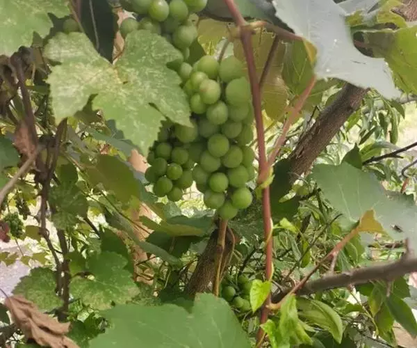 葡萄(学名:Vitis vinifera L.)为葡萄科葡萄属木质藤本植物,小枝圆柱形,有纵棱纹,无毛或被稀疏柔毛,叶卵圆形,圆锥花序密集或疏散,基部分枝发达,果实球形或椭圆形,花期4-5月,果期8-9月。