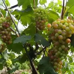 不催根扦插(露地扦插育苗),春季将贮藏的枝条从沟中取出后,先在室内用清水浸泡6-8小时,然后进行剪截。一般把枝条分别剪成有2-3芽的插条。插条一般长20厘米左右,节间长的品种每个插条上只留1-2个芽。剪插条时上端在芽上部1厘米处平剪,下端在芽的下面斜剪,剪口呈“马耳状”(剪口距芽眼近时易生根)。插条上部的芽眼要充实饱满,扦插后如第一芽眼受损害,第二芽眼即可萌发,这样有利于提高扦插成活率。 育苗地应选在地势平坦、土层深厚、土质疏松肥沃、同时有灌溉条件的地方。头年秋季土壤深翻30-40厘米,结合深翻每666.7平方米施有机肥料3000-5000千克,并进行冬灌。早春土壤解冻后及时耙地保墒。扦插分平畦扦插、高畦扦与垄插,平畦主要用于较干旱的地区,以利灌溉;高畦与垄插主要用于土壤较为潮湿的地区,以便能及时排水和防止畦面过分潮湿。无论平畦扦插或高畦扦插,在扦插前要做好苗床。苗床大小应根据地块形状决定,一般畦宽1米,长8-10米,扦插株距12-15厘米,行距30-40厘米,每畦内插3-4行。扦插时,插条斜插于土中,地面露一芽眼,要使芽眼处于插条背上方,这样抽生的新梢端直。垄插时,垄宽约30厘米,高15厘米,垄距50-60厘米,株距12-15厘米,插条全部斜插于垄上。插后在垄沟内灌水,若有条件采用覆盖地膜后扦插效果更好。无论采用哪种扦插方法,扦插时必须注意插条上端不能露出地表太长,同时要防止胡插和避免品种混杂。 扦插时间以当地的土温(15-20厘米处)稳定在10℃以上时开始。华北地区一般在3月下旬至4月上旬,但华北北部4月中旬才可进行露地扦插育苗。 葡萄扦插后到产生新根前这一阶段一定要防止土壤干旱,一般10天左右浇1次水。黏重土壤浇水次数要少,如果浇水过多,土壤过湿,地温降低,土壤通气不良也影响插条生根。插条生根后要加强肥水管理。7月上中旬苗木进入迅速生长阶段,这时应追施速效肥料2-3次。为了使枝条充分成熟,7月下旬至8月应停止或减少灌水施肥,同时加强病虫害防治,进行主梢、副梢摘心,以保证苗木生长健壮,促进加粗生长。苗木生长期间,要及时中耕锄草,改良土壤通气条件,促进根系生长。 露地扦插是最简单的一种育苗方法,成本低,易推广,但若管理不当,扦插成活率低、出苗率低。另外,露地扦插,苗木生长期较短,苗木质量相对也较差。一般露地扦插每666.7平方米扦插6000-7000根插条,成苗率在60%-70%。