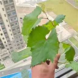 叶卵圆形,显著3-5浅裂或中裂,长7-18厘米,宽6-16厘米,中裂片顶端急尖,裂片常靠合,基部常缢缩,裂缺狭窄,间或宽阔,基部深心形,基缺凹成圆形,两侧常靠合,边缘有22-27个锯齿,齿深而粗大,不整齐,齿端急尖,上面绿色,下面浅绿色,无毛或被疏柔毛;基生脉5出,中脉有侧脉4-5对,网脉不明显突出;叶柄长4-9厘米,几无毛;托叶早落。