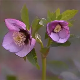 华北耧斗菜 多年生草本,高达60厘米,根粗壮,暗褐色,茎直立,圆柱形,具肋棱,上部被柔毛和腺毛。 基生叶有长柄,为一或二回三出复叶;小叶菱状倒卵形或宽菱形,先端三裂,叶面上无毛,下面被短柔毛;茎生叶与基生叶相似,较小,花数朵,下垂,构成聚伞形花序;花梗长,密被短腺毛;萼片5,紫色,卵状披针形;花瓣与萼片同色,顶端圆截形,有距,向内弯曲;雄蕊多数,心皮5,子房密被短腺毛。蓇葖果,种子小,黑色,有光泽 种皮上具点状皱纹,花期6-7月,果期7-9月。