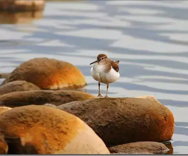 矶鹬(学名:Actitis hypoleucos)是小型鹬类,体长16-22厘米。嘴、脚均较短,嘴暗褐色,脚淡黄褐色具白色眉纹和黑色过眼纹。上体黑褐色,下体白色,并沿胸侧向背部延伸,翅折叠时在翼角前方形成显著的白斑,飞翔时明显可见尾两边的白色横斑和翼上宽阔的白色翼带,飞翔姿势两翅朝下扇动,身体呈弓状,站立时不住地点头、摆尾。栖息于低山丘陵和山脚平原一带的江河沿岸、湖泊、水库、水塘岸边,也出现于海岸、河口和附近沼泽湿地。常单独或成对活动,非繁殖期亦成小群。常活动在多沙石的浅水河滩和水中沙滩或江心小岛上。主要以鞘翅目、直翅目、夜蛾、蝼蛄、甲虫等昆虫为食,也吃螺、蠕虫等无脊椎动物和小鱼。繁殖于欧亚大陆,南到地中海、伊朗、阿富汗和喜马拉雅山,东到日本;越冬于欧洲南部。