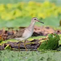林鹬体长约20厘米,体型略小,纤细,褐灰色,腹部及臀偏白,腰白。上体灰褐色而极具斑点;眉纹长,…
