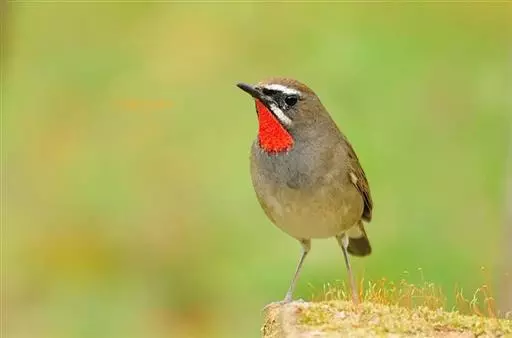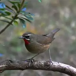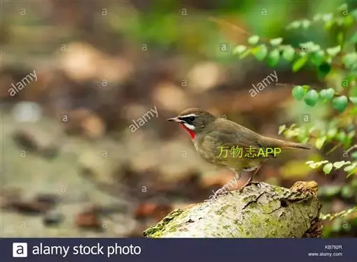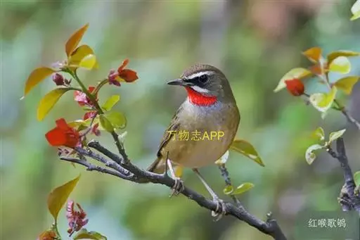 红点颏(学名:Calliope calliope):是鸟纲、鸫科的鸣禽。又名西伯利亚歌鸲。体长14-17厘米,体重16-27克。雄鸟头部、上体主要为橄榄褐色。眉纹白色。颏部、喉部红色,周围有黑色狭纹。胸部灰色,腹部白色。雌鸟颏部、喉部不呈赤红色,而为白色。虹膜褐色。嘴暗褐色。脚角色。