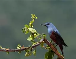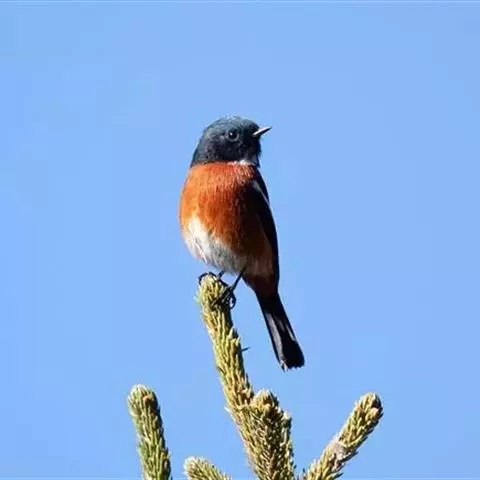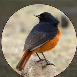 赭红尾鸲:小型鸟类,体长13-16厘米。雄鸟前额、头侧、颈侧、颏至胸概黑色,头顶和背灰色或黑色,…