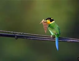 三宝鸟,是佛法僧目佛法僧科三宝鸟属中小型攀禽。成鸟通体为富有光泽的墨蓝绿色,…