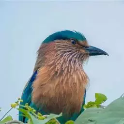 蓝胸佛法僧中型鸟类,体长31~33厘米,通体淡蓝绿色。翅膀长而宽,除栗色背羽外大部分为蓝色。…