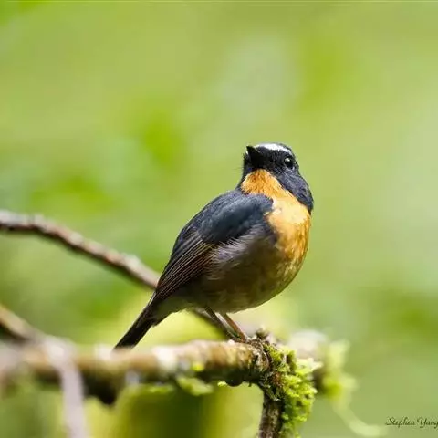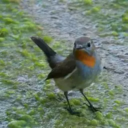 橙胸姬鹟(学名:Ficedula strophiata):体长12-16厘米,是一种体型略小的林栖型鹟。尾黑而基部白,上体橄榄褐色,额具一白色横带,两端向上延伸至眼上形成眉斑。翼橄榄色,下体灰。成年雄鸟额上有狭窄白色并具小的深红色项纹,常不明显。雌鸟似雄鸟,但项纹小而色浅。亚成鸟具褐色纵纹,两胁棕色而具黑色鳞状斑纹。虹膜褐色;嘴黑色;脚褐色。