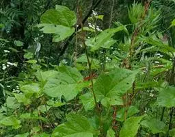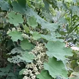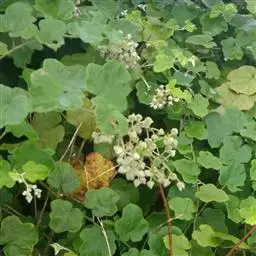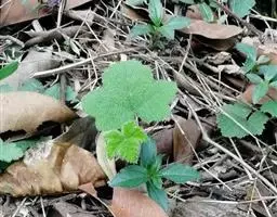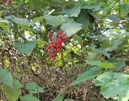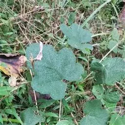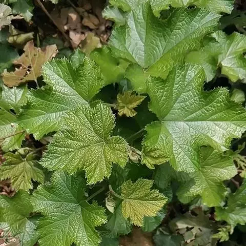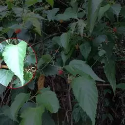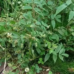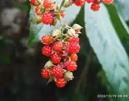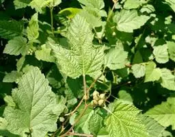 木莓 木莓一般高2-3m。幼枝绿色,有白粉,有少数倒刺。单叶互生;叶柄长3-4.5厘米;托叶线状披针形;叶片近圆形,直径5-9厘米,呈掌状深裂。
