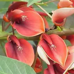 总状花序生3-5花,排列紧密或稍稀疏;总花梗极短或长达数厘米,腋生;花梗极短;苞片披针形,较花梗长;花萼管状,长7-9毫米,被细伏贴毛,萼齿线状披针形,与萼筒等长或稍短;花冠淡黄色或白色,旗瓣倒卵状椭圆形,先端微凹,中部稍缢缩,下部稍狭成不明显的瓣柄,翼瓣较旗瓣短,瓣片长圆形,先端微凹,较瓣柄长,龙骨瓣较翼瓣短,瓣片半长圆形,与瓣柄等长或稍短;子房有短毛。