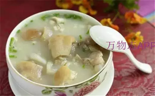 猪蹄:猪蹄中含有较多的蛋白质、脂肪和碳水化合物,可加速新陈代谢,延缓机体衰老,并且对于哺乳期妇女能起到催乳和美容的双重作用,另外具通乳脉,滑肌肤、去寒热、托痈疽、发疮毒、抗老防癌之功效,特别适宜于经常四肢乏力、两腿抽筋、麻木、消化道出血、失血休克及缺血性脑病患者食之。
