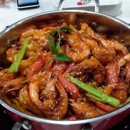 香锅虾是一道美食,制作原料主要有新鲜海虾、藕、洋葱。