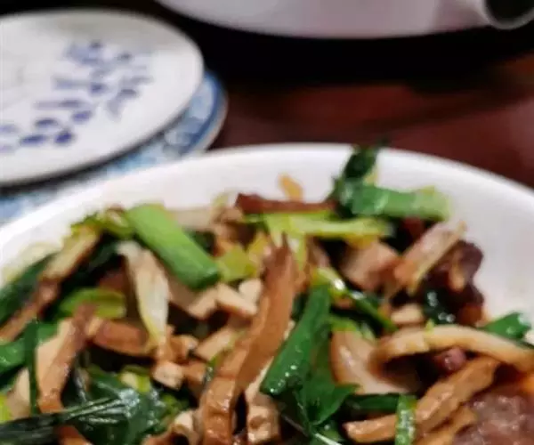 韭菜炒香干是一道菜品,制作原料主要有韭菜、香干等。鲜嫩可口,有点小小的微辣,加入切成段的韭菜,翻匀,待韭菜变软即可起锅。