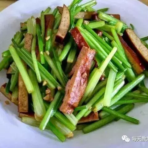【原材料】:香干200克、韭菜150克。