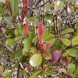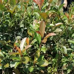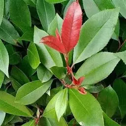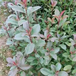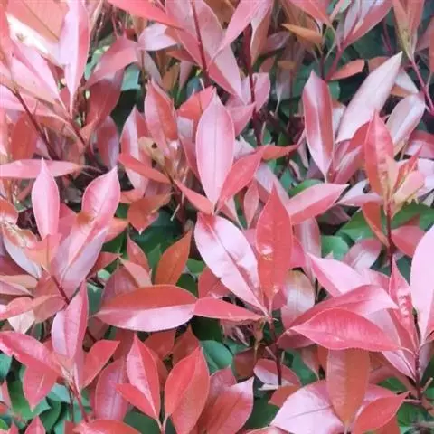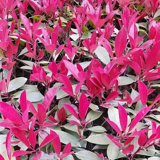是蔷薇科石楠属杂交种的统称,为常绿小乔木或多枝丛生灌木,单叶轮生,叶披针形到长披针形,新梢及嫩叶鲜红色,老叶革质,叶表深绿具光泽,叶背绿色,光滑无毛。顶生伞房圆锥花序,小花白色,花期4月上旬至5月上旬。红色梨果,夏末成熟,可持续挂果到翌年春。 园林中常用的有红罗宾'RED Robin'和红唇'RED Tip'两个品种,其中红罗宾的叶色更加持久鲜艳,观赏性更强。红叶石楠主要产于亚洲东部和东南部、北美洲的亚热带和温带地区。 另外还有火艳`Camelvy'、鲁宾斯'Rubens'、 强健'Rubusta'等品种。