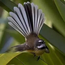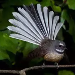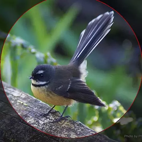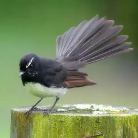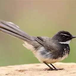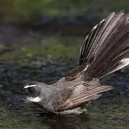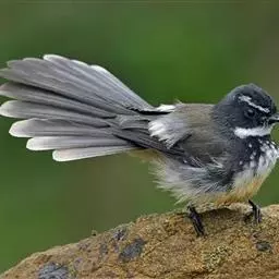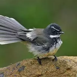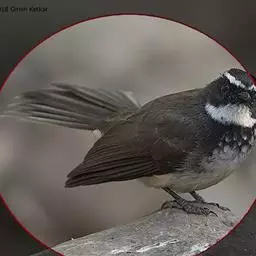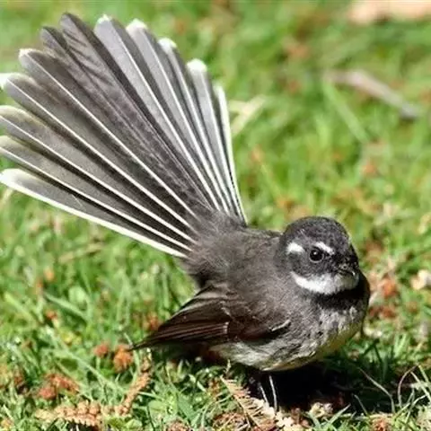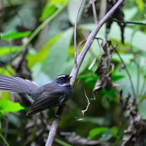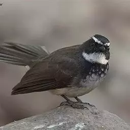 白眉扇尾鹟:体长17厘米,是一种中等体型的灰色扇尾鹟。色彩独特。宽宽的眉纹及前额白色,尾有白色宽边…