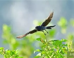 白喉扇尾鹟:是鸟纲、扇尾鹟科的小型鸟类,体重9-14克,体长151-202毫米。通体黑灰色,…