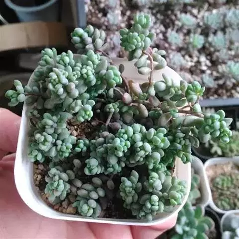 白霜,景天科景天属小型多肉植物,叶子绿色肉质会有白霜覆在表面。