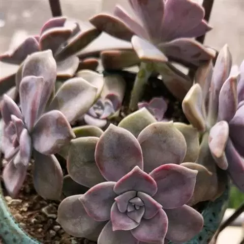 紫珍珠是景天科石莲花属的多年生肉质草本植物。植株中小型;叶片肉质,匙形,呈莲座状紧密排列;叶片粉紫色,…