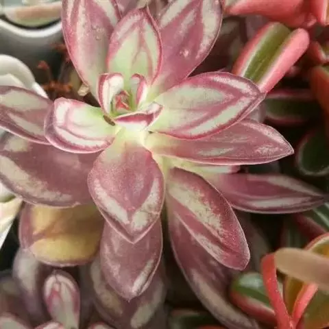 红边月影为景天科石莲花属多肉植物,在温差增大,光照增多时绿色的叶子会呈现边沿红色,非常好看!…