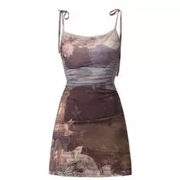 印花吊带裙
