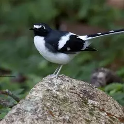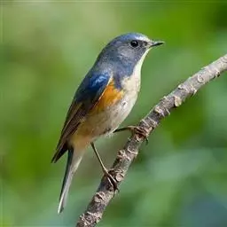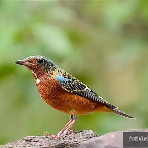 体小(19厘米)的矶鸫。两性异色。雄鸟:比栗腹矶鸫体小而纤细,区 蓝头矶鸫(图一) 别为腰赤褐色,翼及上背较黑,翼上具白色块斑;甚似白喉矶鸫的雄鸟,但无白色喉块且颏赤褐色。雌鸟:上体纯橄榄褐,下体具白色及深褐色的扇贝纹;与雌蓝矶鸫的区别在背及尾橄榄褐,尾下覆羽白。虹膜-深褐;嘴-黑色;脚-灰褐。