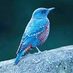 蓝头矶鸫(学名:Monticola cinclorhynchus)为鹟科矶鸫属的鸟类,是一种候鸟,俗名臭皮翠、白喉叽鸫、白喉石鸫、葫芦翠、虎皮翠。全长19厘米。自额至后颈及翅上的小覆羽均钴蓝色。腰和尾上覆羽浓栗。内侧飞羽有一白色块斑。喉部中央有一大型白斑。下体浓栗色,至尾下覆羽转为棕黄。以各种昆虫为食。每年的4-5月份及10至11月份迁徙经过南北湖地区,白天逗留在树林里觅食。分布于西伯利亚、巴基斯坦、印度、东南亚各国、中国等地,主要生活于多岩山地的林间。该物种的模式产地在喜马拉雅山脉。