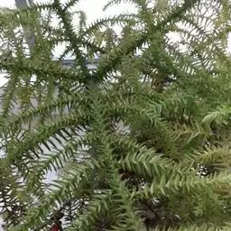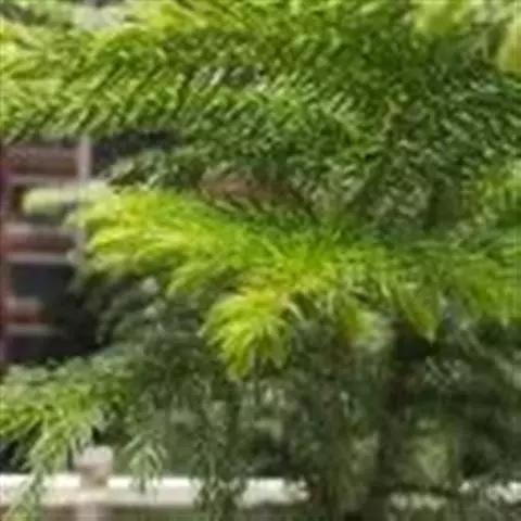 澳洲杉,常绿乔木,一般盆栽为幼树,高在2米以下。喜温暖、潮湿的环境,树冠尖塔形,深绿色。茎干直立,侧枝轮生,水平伸展。小枝二列互生,水平延伸或略下垂。叶有二型。球果近圆形。